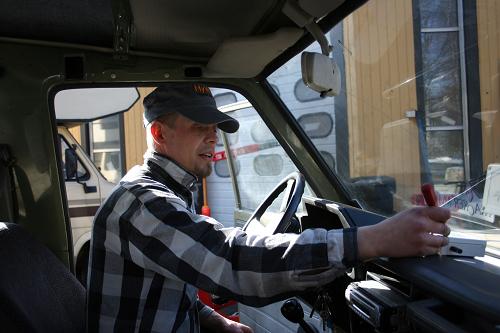 Ville Kämäräinen, Tracker Oy. Ville vieraili Ylivieskan caravan palvelulla valvomassa asennuksen