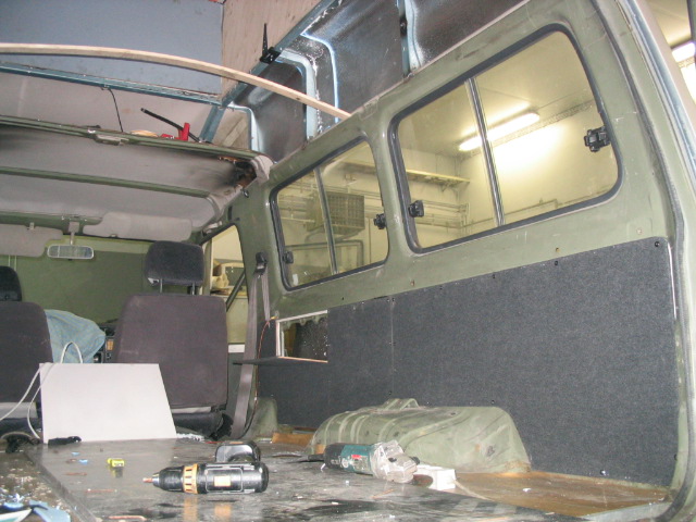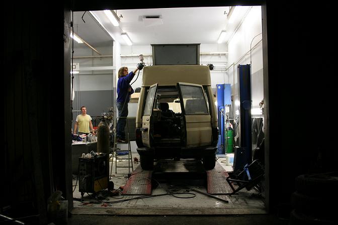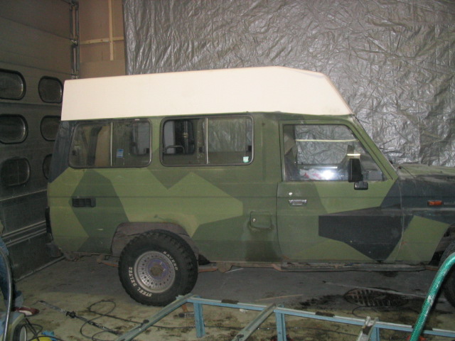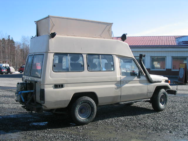 Lantıkkaan rakennettiin 35 cm lasikuıtukorotus ja 50 cm camper-katto joka lasketaan ajon ajaksı, sisalla istumapaıkat ja vuodemahdollisuus neljalle.