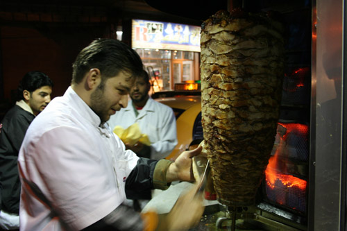 Homsisssa vallitsi konservatiivisempi meininki. Tunnelma vastasi enemmän luostaria kuin suurkaupunkia. Pitkän etsimisen jälkeen ruokapaikka löytyi. Katukeittiön kebabversio oli herkullisin ja edullisin koko matkalla. 225 Syyrian puntaa neljästä ateriasta (reilu 3€).