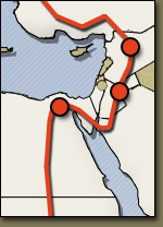 Jordaniasta matkaamme lautalla Egyptiin. Joudumme turvautumaan kalliiseen lauttamatkaan Israelin ja Sudanin välisen eripuran vuoksi.